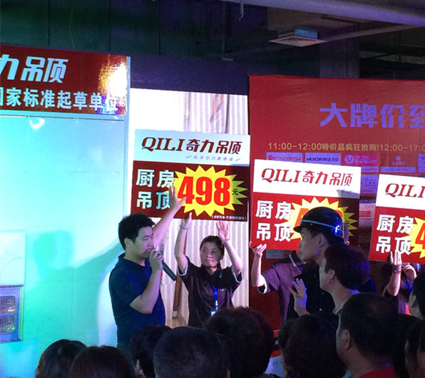 奇力吊頂公司營銷中心下屬銷售部與金華專賣店就活動執行深度溝通,確定了活動方案的執行流程及細節。在銷售部當區區域經理的帶領下,奇力金華店團隊根據活動執行方案,展開活動前期宣傳與店面布置工作。單頁、橫幅、海報、噴繪等各種廣告發布;電話預約等覆蓋全市的轟炸式活動信息推送,最大程度將活動信息發布至金華全城。